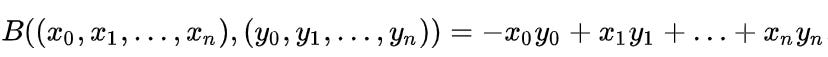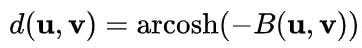 However after much research, I found the hyperboloid model. Now the hyperboloid model is essentially based on the following bilinear product of two lists: